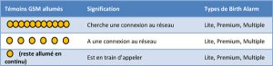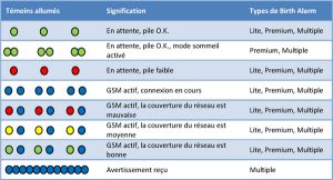 Que signifient les témoins qui s’allument sur le Birth Alarm ?
